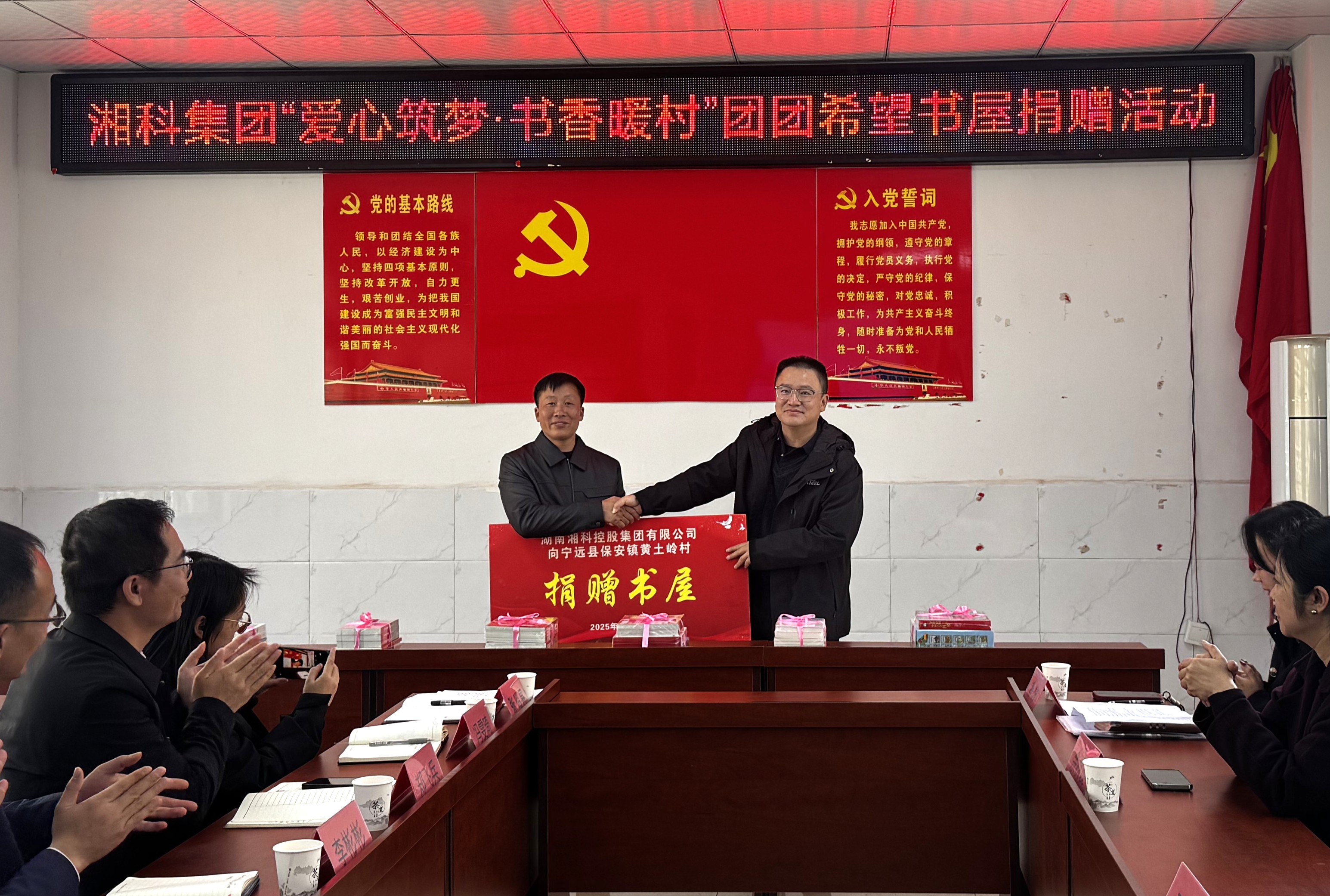 11月25日,由共青團(tuán)湖南省委指導(dǎo)、湖南省青少年發(fā)展基金會(huì)支持的“愛心筑夢·書香暖村”團(tuán)團(tuán)希望書屋捐贈(zèng)儀式在寧遠(yuǎn)縣黃土嶺村舉行。湘科集團(tuán)作為本次活動(dòng)的發(fā)起單位,通過整合資源、創(chuàng)新形式,為鄉(xiāng)村振興注入文化動(dòng)能,標(biāo)志著集團(tuán)在教育公益領(lǐng)域邁出堅(jiān)實(shí)步伐。集團(tuán)黨委書記、董事長聶誠出席并向黃土嶺村村委會(huì)捐贈(zèng)書屋。